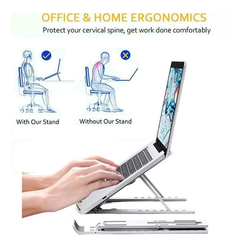 আমাদের Aluminum Alloy Adjustable Portable Folding Laptop Stand দিয়ে আপনার ল্যাপটপকে তুলুন ৬-৭ ইঞ্চি উচ্চতায়।